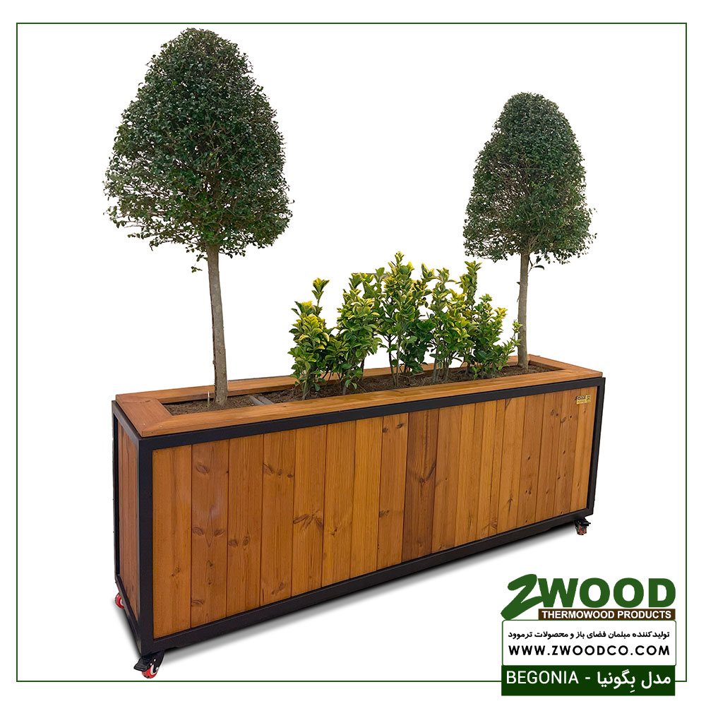 فلاورباکس ترموود بگونیا از چوب ترموود با کیفیت بالا ساخته شده است. ترموود نوعی چوب است که از فرآیند حرارتی خاصی عبور کرده و تحت دما و بخار قرار میگیرد. این فرآیند باعث میشود که چوب مقاومتر، سبکتر و دارای ویژگیهای بهتری برای استفاده در محیطهای داخلی و خارجی باشد.