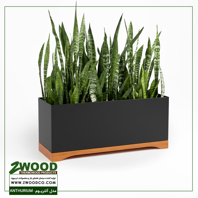 در ساخت این گلدان چوبی از چوب ترموود درجه یک استفاده شده است. فرآیند ترموود باعث افزایش مقاومت چوب در برابر رطوبت، تغییرات دما و عوامل محیطی میشود. این ویژگی باعث میشود فلاور باکس اداری آنتریوم حتی در محیطهای پررفتوآمد و شرایط مختلف آبوهوایی، دچار تغییر شکل یا ترک نشود.