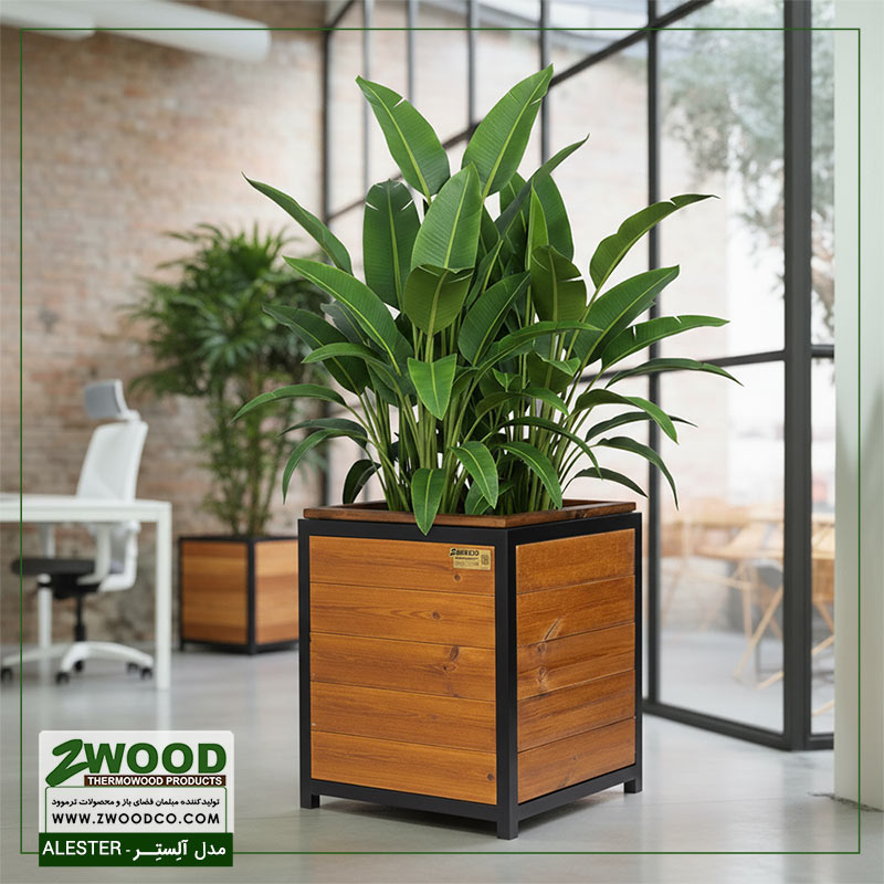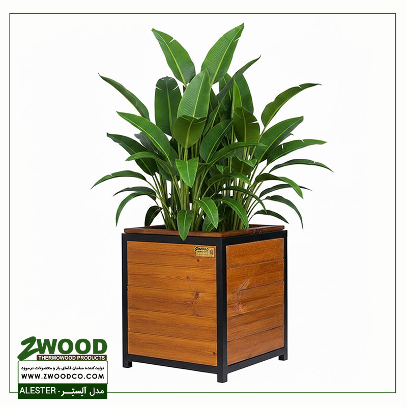 - چوب ترموود مقاوم: چوب ترموود بهعنوان یکی از مقاومترین متریالهای طبیعی در برابر رطوبت، اشعه UV و سرما شناخته میشود. این ویژگی باعث میشود که گلدان فضای باز آلستر، بدون نیاز به نگهداری مداوم، سالها زیبایی خود را حفظ کند.